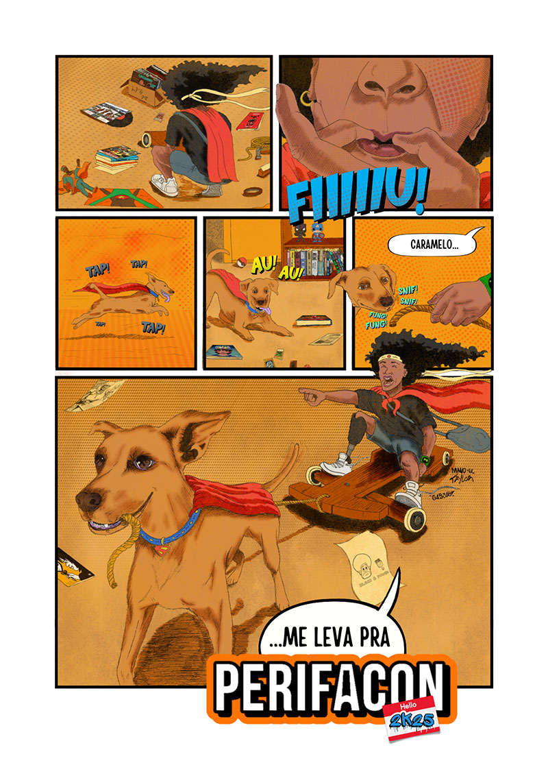 “Essa história é sobre a retomada de algo que nunca tivemos enquanto crianças nerds de periferia”, explica Mano-El Taylor, ilustrador, podcaster e pesquisador autodidata com foco em raça, classe e gênero nos quadrinhos, vídeos e palestras.