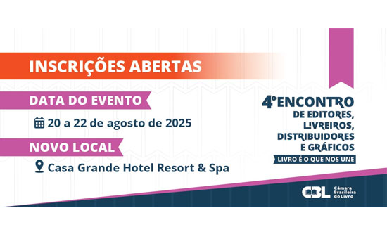 A Câmara Brasileira do Livro (CBL) realizará, entre os dias 20 e 22 de agosto de 2025, a 4ª edição do Encontro de Editores, Livreiros, Distribuidores e Gráficos (EELDG).