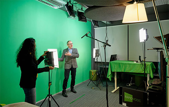 Normalmente utilizado para produzir módulos de e-learning da The Academy Online, plataforma interna de capacitação contínua da Easyfairs, o estúdio foi disponibilizado de forma excepcional à SMOG após a equipe da empresa conhecer o trabalho do projeto.