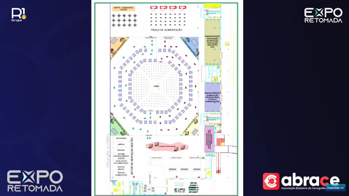 A planta foi co-criada com a ABRACE, entidade que abriga as empresas de cenografia e montagem de estandes, e uma equipe formada por renomados profissionais voluntários especializados em feiras e congressos foi formada para organizar o espaço de estandes e arena para debates e palestras.