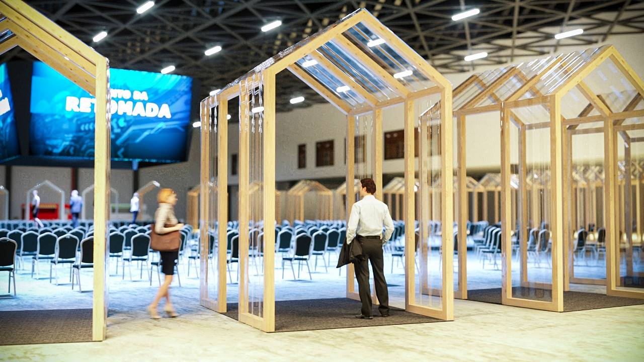 A Expo Retomada será erguida no pavilhão 1 do São Paulo Expo, em um espaço de mais de 20 mil m². “Fizemos a ocupação deste espaço de uma maneira que contemplássemos todos os protocolos. Tínhamos isso como nossa lição de casa na hora de elaborar o projeto. Se estávamos acostumados a termos corredores de 3 metros por conta das normas técnicas definidas, achamos por bem ampliar isso. Além disso teremos fluxo unidirecional e, na área dos painéis, todos os 300 assentos contarão com uma distância de 1,5m entre si”, explica Paulo Octavio Pereira de Almeida, sócio da Live Marketing Consultoria e idealizador do evento junto com Fernando Lummertz.