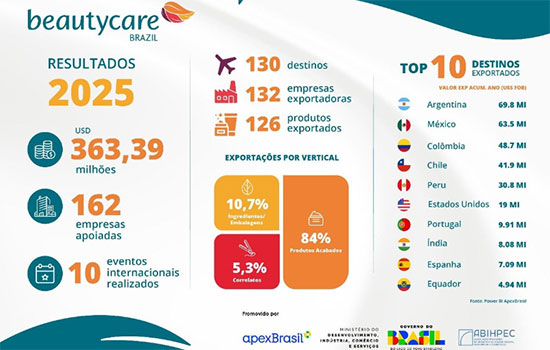 Paralelamente, o programa ampliou sua atuação em mercados emergentes, com presença em eventos como Cosmoprof Índia e in-cosmetics Ásia (Tailândia), acompanhando o movimento das empresas brasileiras em busca de diversificação geográfica e novas oportunidades comerciais.
