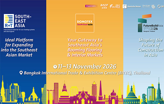 A iniciativa reunirá, de forma simultânea, as feiras DOMOTEX South East Asia, R+T South East Asia e Future Build Asia, que terão sua primeira edição conjunta entre os dias 11 e 13 de novembro de 2026, no Bangkok International Trade & Exhibition Centre (BITEC), em Bangkok, Tailândia.