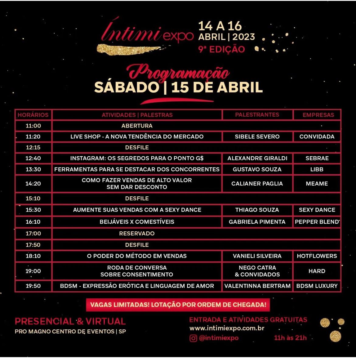 Confira abaixo a programação de conteúdo da Íntimi Expo 2023: