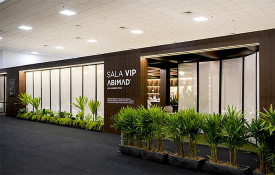 Dividida entre áreas de estar, bar, refeições e espaços reservados para reuniões, a Sala VIP foi pensada para promover bem-estar e networking em meio à intensa agenda de negócios da ABIMAD.