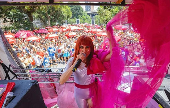 Para criar o clima e reforçar a homenagem, serão distribuídas máscaras de Rita Lee, com os tradicionais cabelos vermelhos e óculos escuros.