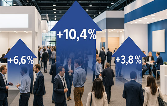 No panorama geral dos eventos franceses, o estudo aponta crescimento de 5,0% no número de expositores, 3,3% no volume de visitas e 2,6% na superfície utilizada. Os resultados confirmam o fortalecimento do calendário presencial do país e indicam um retorno consistente da movimentação de negócios.